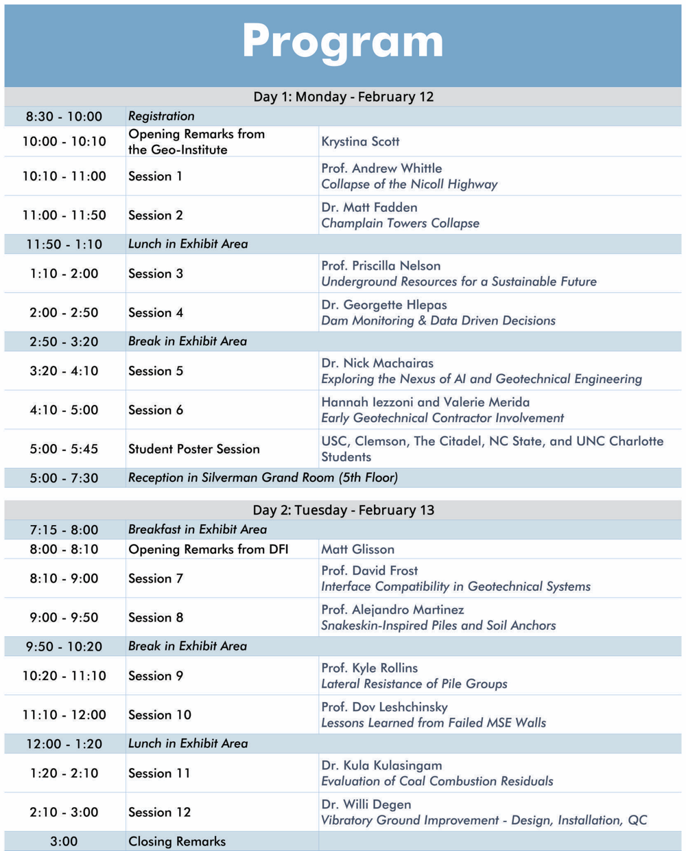 The conference will include invited technical presentations by leaders in the field of geotechnical engineering, including: